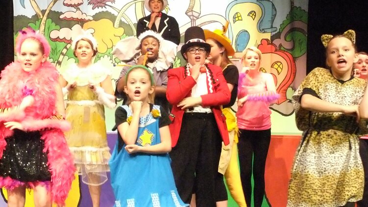 While directing Alice in Wonderland, one of the boys double cast as as the Mad Hatter decided that he wanted to eat bread and butter in the tea party scene.  Without asking, he took them on to stage and proceeded to do so.  Did the set crew know this?  Did I know this ahead of time? Nope and nope.  When the scene ended, the crew was instructed to turn the table on its side and carry it out.  Everything had been stuck to the table…but of course not the bread and butter!  No one saw it fall off the butter dish break but me.  The stage manager brought out a stool and promptly slipped on the butter and fell to the floor.  Fun times…
