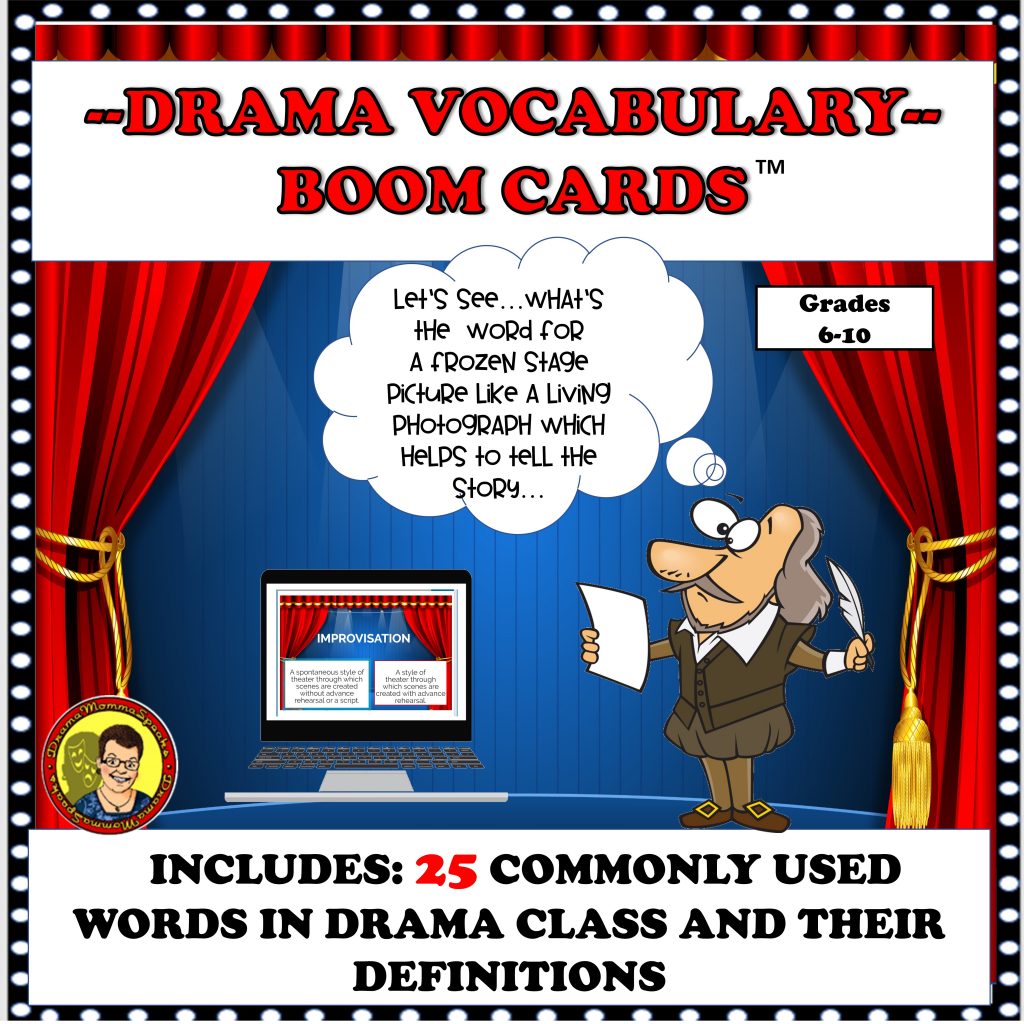 HOW DO I USE BOOM CARDS IN MY DRAMA CLASSROOM?  If I were you, I’d assign Boom Cards for distance learning or use them as differentiated instruction in the classroom. These are suitable for middle grade students.  You could introduce the unit with the Boom Cards, assign them as homework for those with WiFi access or make them part of the lesson for the day.