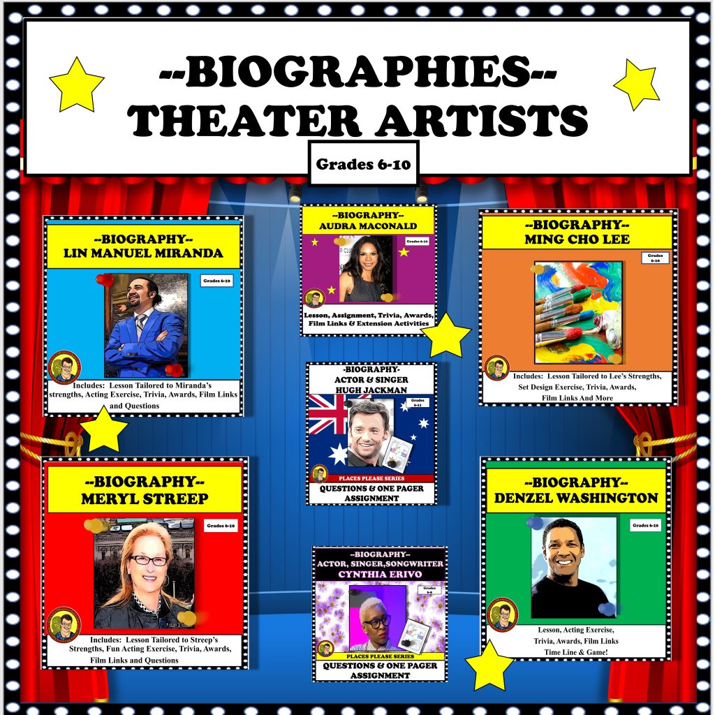 - Bundle: Biographies of Theater Artists–Lin Manuel Miranda, Audra McDonald, Hugh Jackman, Meryl Streep, Cynthia Erivo, Denzel Washington and Ming Cho Lee
