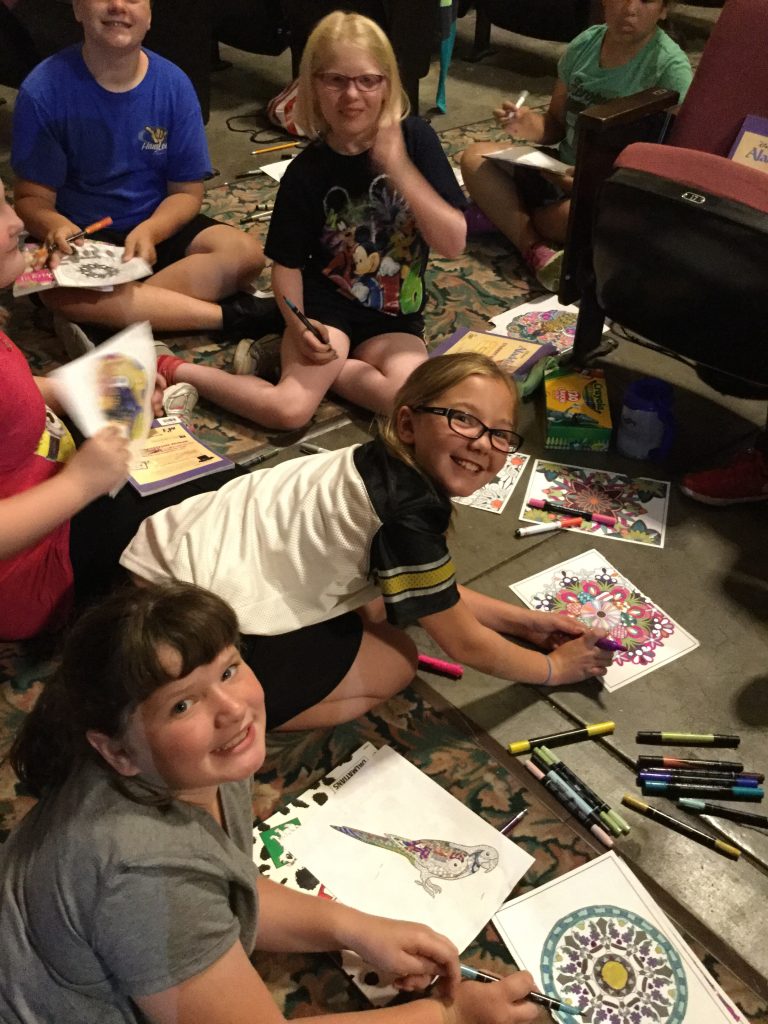 Drama campers having a little coloring time break!